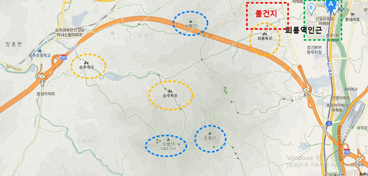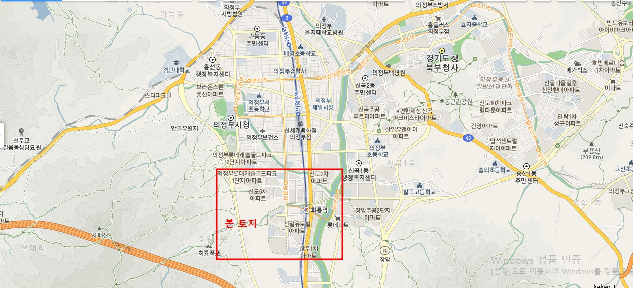 의정부회룡역 근처 도봉산 자락 95,706㎡. 도시 지역 근처(침실 2개 포함)