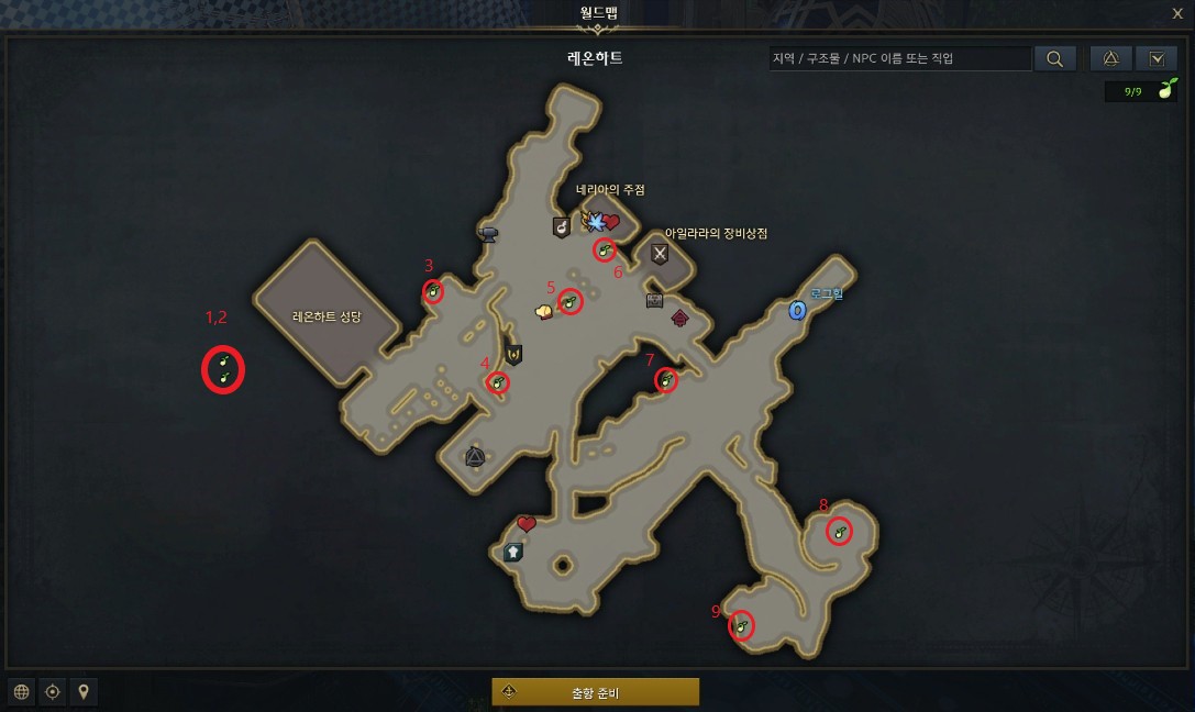 첫 번째는 Leonhart Mococo의 위치입니다. 참조할 수 있도록 편리한 순서로 번호가 매겨져 있습니다.