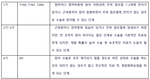 3) UGI 조영제 투여 후 X선 촬영을 통해 위 점막 표면을 알아보는 방법으로 위암의 크기 및 형태를 판단합니다 촬영에는 약 20분이 소요되며 궤양, 종양, 폐쇄 부위까지 알 수 있습니다 실제로 암의 진행 상황을 볼 뿐만 아니라 다른 기관으로 전이된 곳이 있는지 절제를 진행한다면 어디까지 절제해야 하는지 결정하는 역할을 정하기도 합니다 4) CT(전산화단층촬영술) 인체의 X선을 여러 방면으로 투과시켜 5mm 두께로 복부를 볼 수 있는 방법입니다 위암으로 판단될 경우 CT를 통해 실제 암세포가 lymph node 주변 전이 진행 상태에 따라 정기적으로 꾸준히 촬영하여 상태를 파악합니다.참고로 CT를 촬영하는데 3~4시간 정도 금식이 필요하므로 미리 준비해 두시면 됩니다 *참고*진행성 위암 병기 lymph node 전이된 경우 의무기록차트에 N0, N1, N2, N3라고 표시하도록 되어 있습니다 숫자가 적을수록 주변 lymph node까지 옮겨졌는지 알 수 있습니다