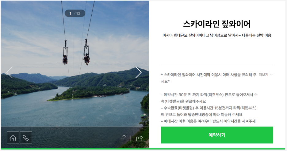 춘천 남이섬 – 스카이라인 짚와이어 – 유니크데이트 – 티켓박스