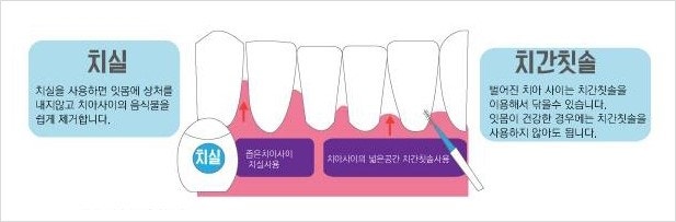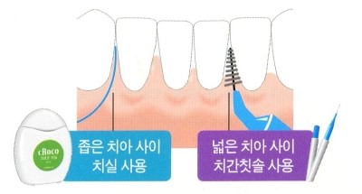 일반적으로 좁은 치아 사이에는 치실을 사용하고 잇몸이 내려가서 벌어진 치아 사이에는 치실을 사용하는 것이 효과적이지만 치아 접촉면이 오목한 치아는 치실을 사용하는 것이 효율적으로 닦입니다.치실은 잇몸에 상처가 없고 좁은 치아 사이의 음식물로 제거하는데, 위 작은 어금니 치면과 같은 오목한 형태의 경우 치간칫솔이 더 잘 닿을 수 있습니다.
