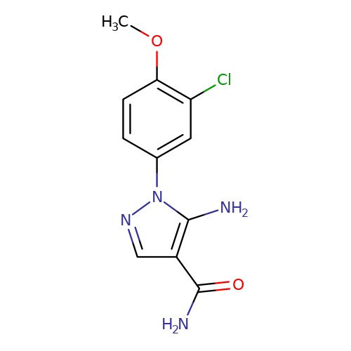 웃다: COC1=C(C=C(C=C1)N2C(=C(C=N2)C(=O)N)N)Cl