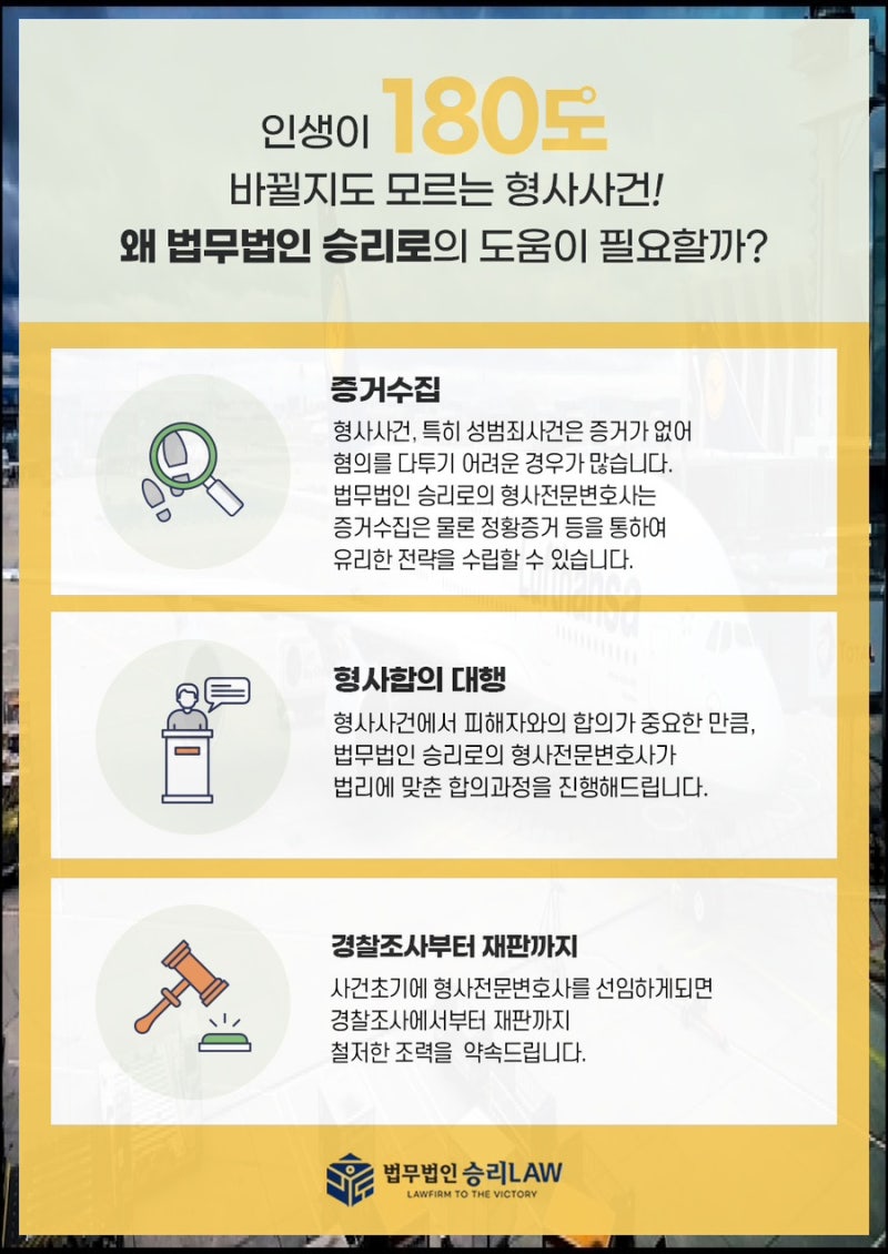 피해를 입은 입장에 있더라도 확실한 증거 확보가 이뤄지지 않으면 가해자를 처벌하기 어려운 만큼 평택 변호사 선임이 선행되지 않으면 어려움이 있다고 했습니다.성범죄 사건 피의자가 되면 사회와 단절되고 형사처벌이 이뤄진다고 했습니다. 성범죄 사건은 특히 죄질이 심각하게 나쁘다는 인식 때문에 범죄자에 대한 사회적 혐오가 급증했습니다. 사회적으로 민감한 안건이기 때문에 부적절한 행동으로 강력한 형사처벌을 받을 수 없다고 강조했습니다.국내 사회에서는 온라인 통신 환경이 빠르게 발전한 환경에서 인터넷을 이용한 통신도 가능하지만 사이버 범죄에 이용하는 사람도 있다고 했습니다. 성착취물을 판매해 재산상 이익을 확보한 범죄조직이 구속돼 사회적 충격을 주는 사건이 있었다고 밝혔습니다.벌금형을 선고받은 와중 전과자로 기록돼 사회생활에서 불이익에 해당할 수 있다고 했습니다. 상당한 비난과 불편의 대상이 될 수 있는 만큼 무고한 혐의로 처벌받을 상황이 아니기 때문에 적절한 대안이 마련돼야 하는 것은 확실하다고 말했습니다.