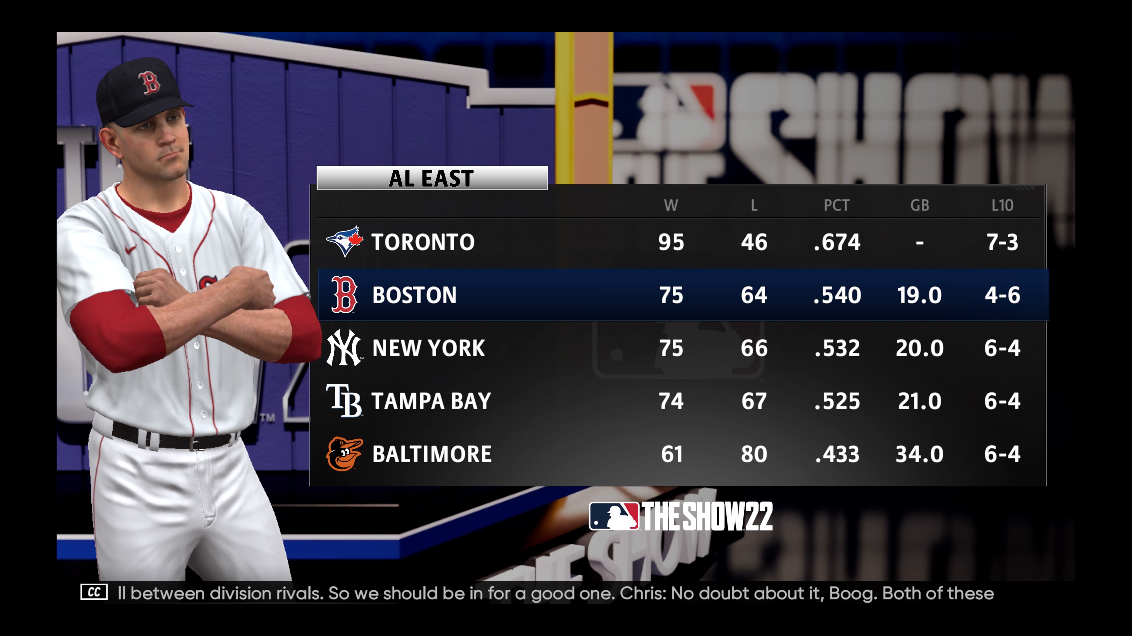 NYY(AL East에서 3위, BOS에서 2위)와의 경기는 항상 흥미진진합니다.