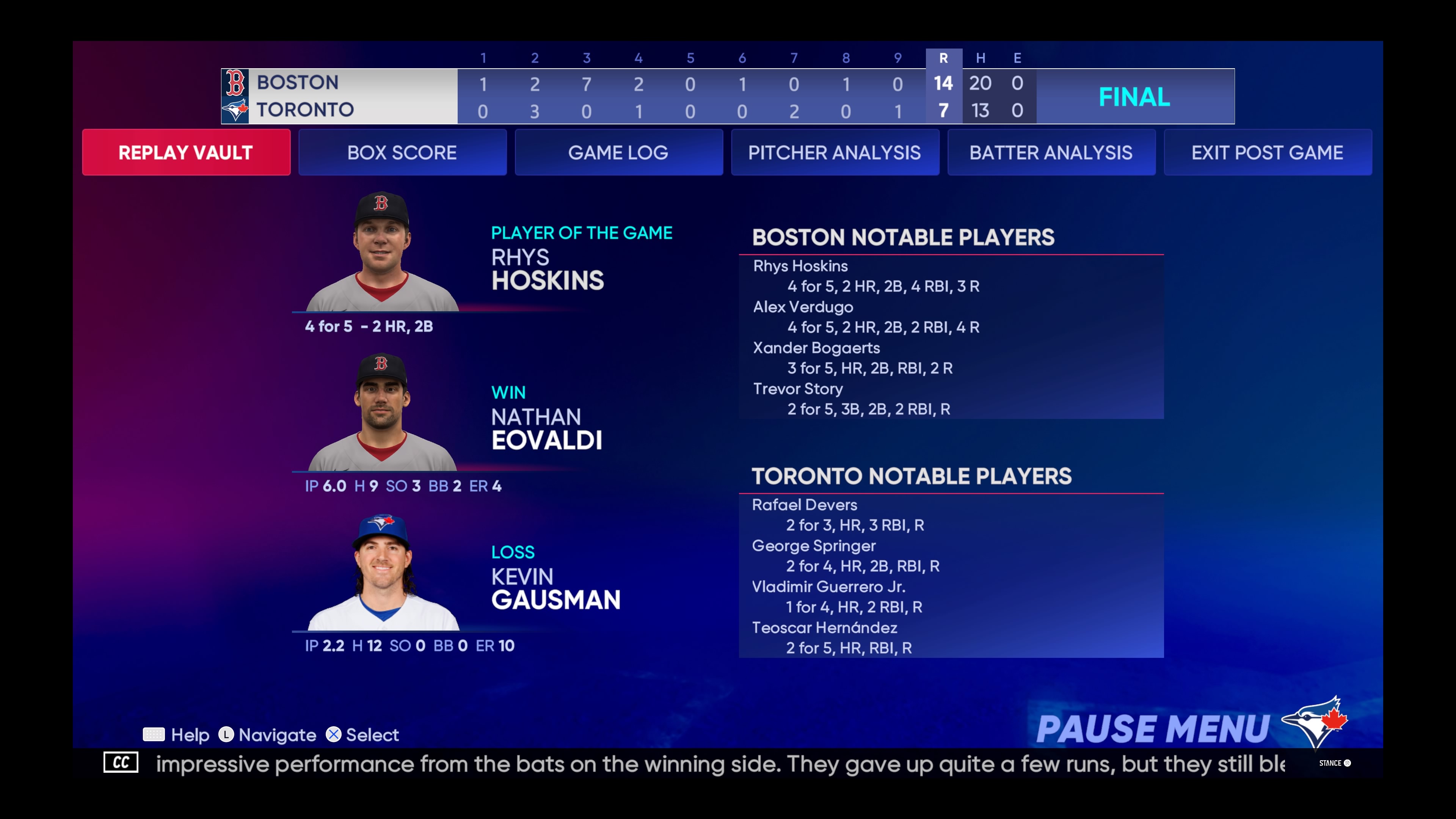 가우스만의 BOS 복귀전이다. 2.2이닝 10득점으로 지난주 기록을 모두 갈아치웠다.